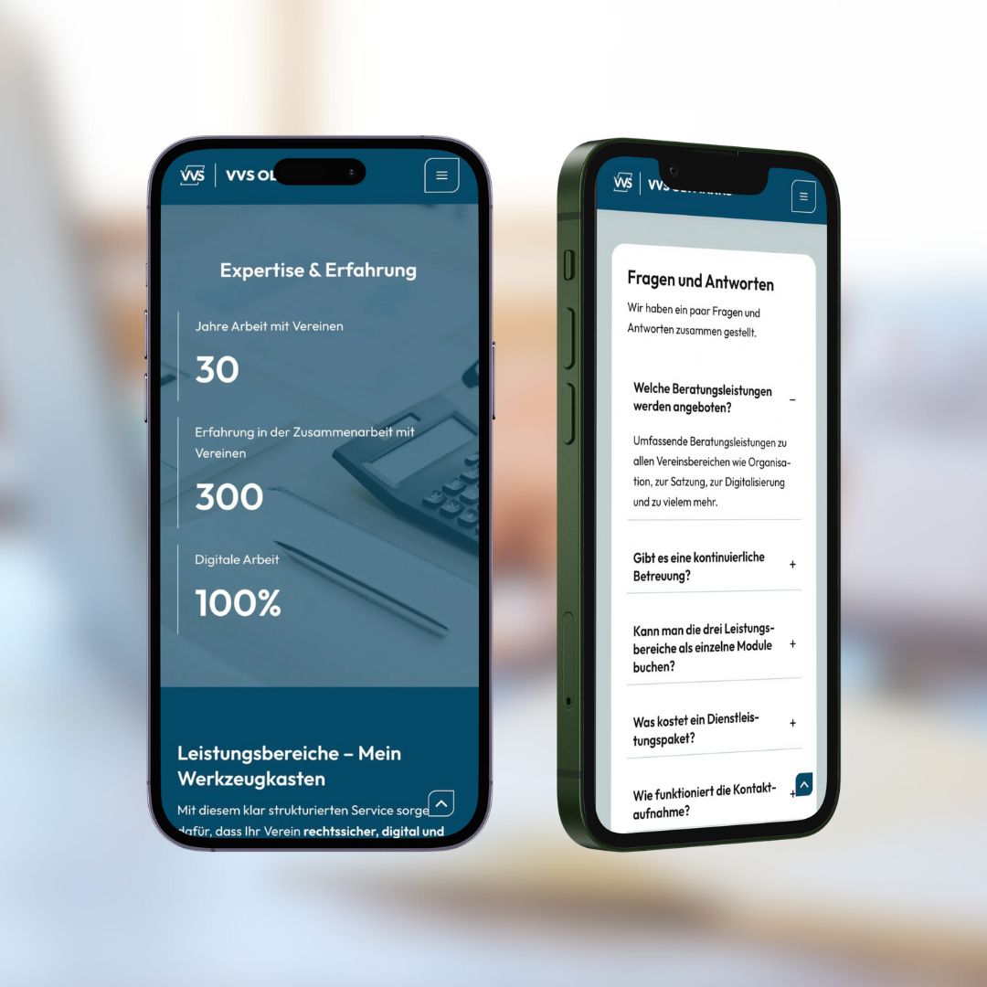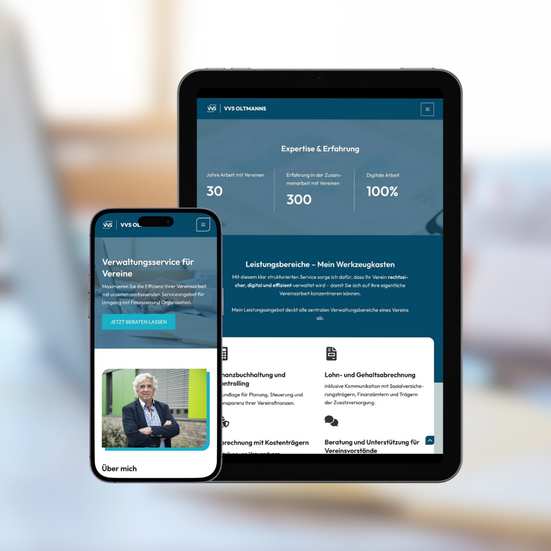 Für VVS Oltmanns sollte eine moderne, seriöse und vertrauenswürdige Online-Präsenz entstehen, die den Schwerpunkt auf Klarheit und Professionalität legt. Da die Zielgruppe aus ehrenamtlichen Vereinsvorständen und Verantwortlichen besteht, war eine übersichtliche, leicht verständliche und responsive Onepage-Webseite entscheidend.